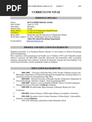 Curriculum Vitae Aristide Pdf Rwanda Clinical Psychology